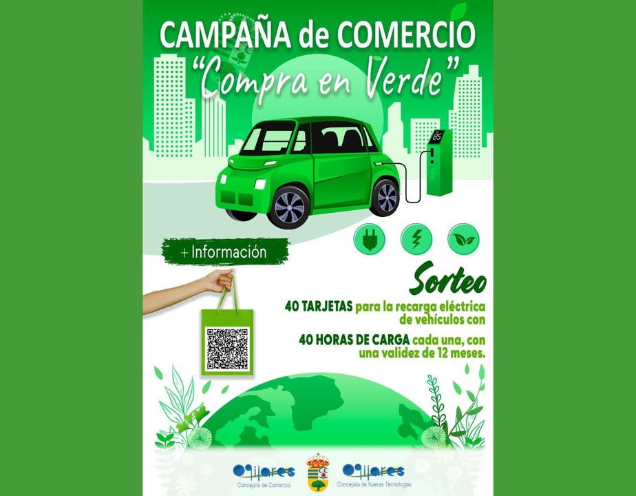Si eres vecino/a de Ogíjares y tienes un vehículo eléctrico o híbrido enchufable, participa en la campaña “Compra en Verde” y entra en el sorteo de: