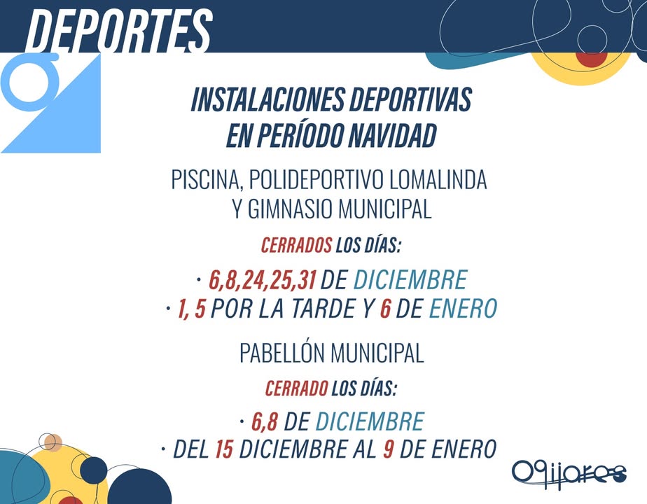 🎄 Aviso de cierre de instalaciones deportivas municipales 🎄