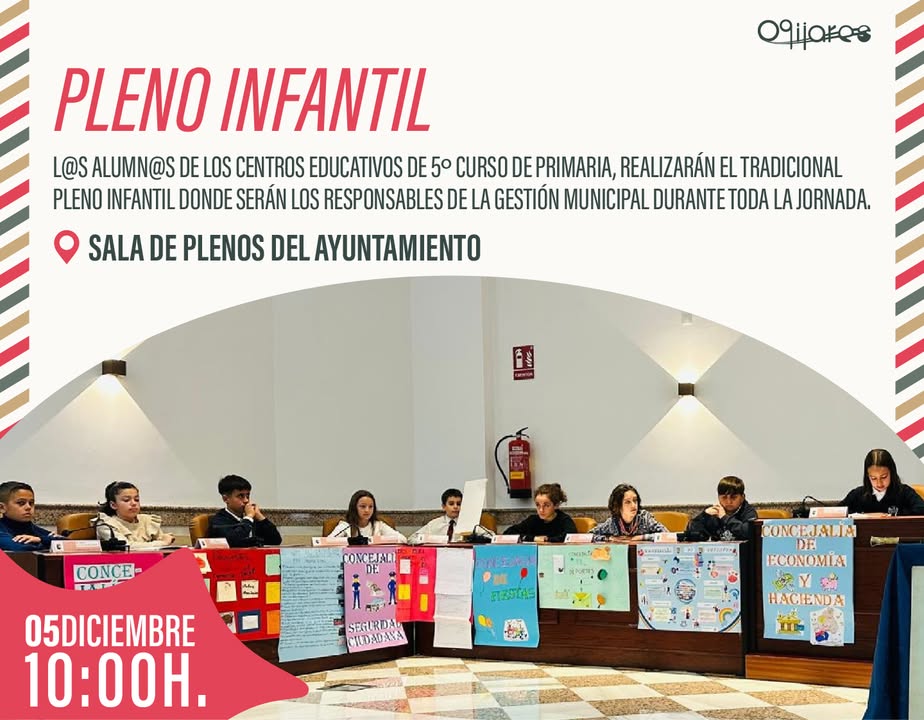 L@s alumn@s de 5.º de primaria de los centros educativos de Ogíjares participarán en el tradicional Pleno Infantil – Especial Constitución Española 👧👦
